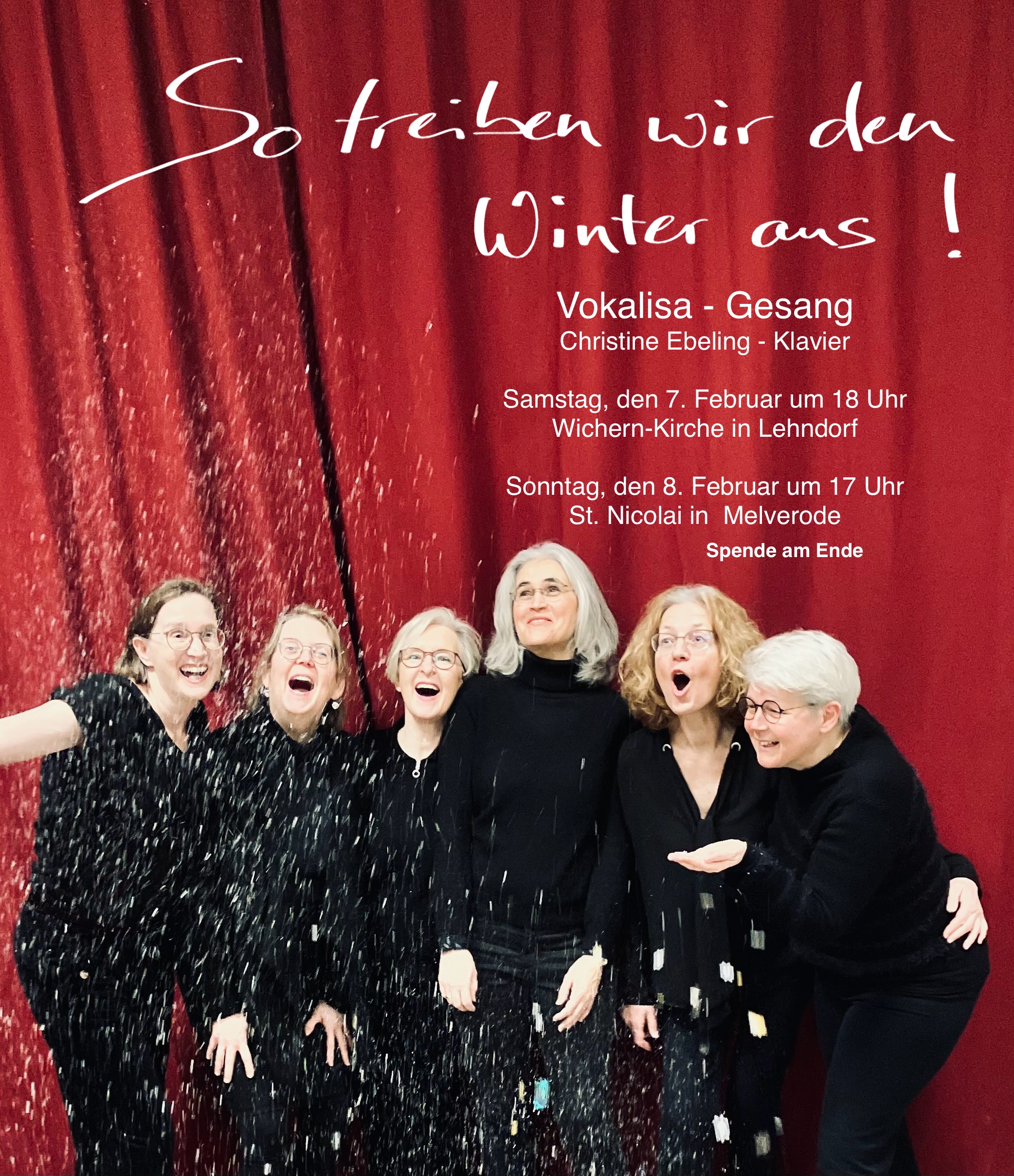 Vokalisa singen a cappella begleitet von Christine Ebeling am Klavier, Snacks zum Wein runden im Anschluss den Abend abSonntag, 08.02.2026 – Sexagesimä 10:00